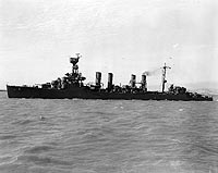USS Raleigh, a 7,050-ton Omaha class light cruiser, was built at Quincy, Massachusetts. Commissioned in February 1924, she made a maiden cruise to Northern Europe in mid-year. After four years of operations with the Scouting Fleet in the Atlantic, Pacific and Caribbean, Raleigh returned to European waters in September 1928 for a year-long tour as the U.S. Navy's flagship there. Further Scouting Force service in 1929-36 followed, with the ship shifting her base to San Diego, California, in 1933. In 1936-38, Raleigh was flagship of Squadron 40-T, which operated off Spain during that nation's bloody civil war. She spent the rest of the 1930s and the early 1940s off the U.S. and in the Hawaiian area, taking an active part in the U.S. Fleet's exercises.