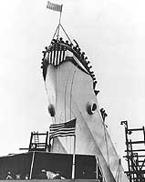 Photo #: NH 75593 USS Reno (CL-96) Ready for launching, at the Bethlehem Steel Company shipyard, San Francisco, California, 23 December 1942. Courtesy of James Russell, 1972. U.S. Naval Historical Center Photograph. Online Image: 72KB; 590 x 765 pixels |