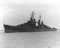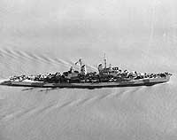 Photo #: NH 98467 USS Reno (CL-96) Following repair of torpedo damage, circa Fall 1945. Location may be Charleston Harbor, South Carolina. Official U.S. Navy Photograph, from the collections of the Naval Historical Center. Online Image: 61KB; 740 x 615 pixels |