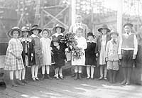 Photo #: NH 102848 USS R-14 (Submarine # 91) Ship's Sponsor, Miss Florence Gardner (holding flowers) with her party during R-14's launching ceremonies at the Bethlehem Shipbuilding Company's Fore River Plant, Quincy, Massachusetts, on 10 October 1919. Collection of the Society of Sponsors of the United States Navy. U.S. Naval Historical Center Photograph. Online Image: 73KB; 740 x 535 pixels |