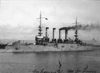 Photo #: NH 63587 USS Saint Louis (C-20) Off San Francisco, California, circa 1909-1916. Collection of Rear Admiral Ammen C. Farenholt, USN(MC), 1931. U.S. Naval Historical Center Photograph. Online Image: 68KB; 740 x 565 pixels |