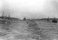 Photo #: NH 44904 Review of the Atlantic Fleet Minesweeping Squadron, November 1919 Ships of the squadron anchored in the Hudson River, off New York City, while being reviewed by Secretary of the Navy Josephus Daniels on 24 November 1919, following their return to the United States after taking part in clearing the North Sea mine barrage. Identifiable ships present are listed on Photo # NH 44904 (complete caption). U.S. Naval Historical Center Photograph. Online Image: 82KB; 740 x 535 pixels |