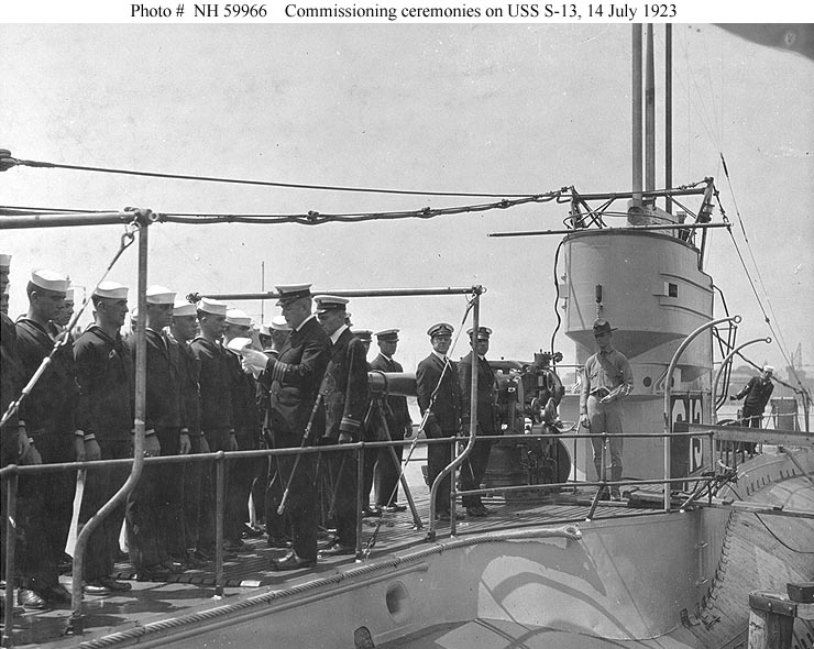 "Uncle Sam's latest submarine S-13 just commissioned.