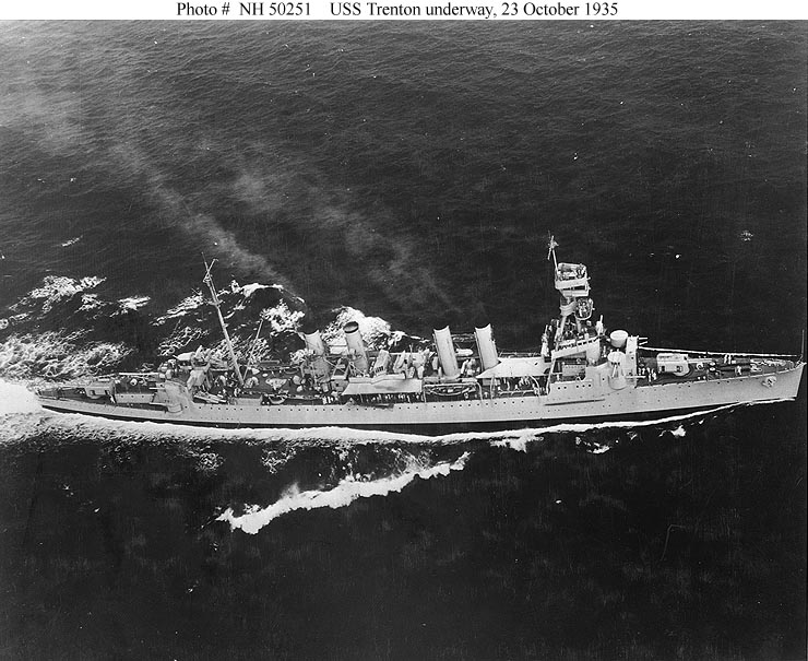 Photo #: NH 50251 USS Trenton (CL-11) Underway at sea, 23 October 1935 U.S. Naval Historical Center Photograph. Online Image: 107KB; 740 x 605 pixels |