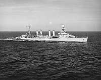 Photo #: 19-N-44436 USS Trenton (CL-11) Underway off Bona Island in the Gulf of Panama, 11 May 1943. Photograph from the Bureau of Ships Collection in the U.S. National Archives. Online Image: 102KB; 740 x 610 pixels Reproductions of this image may also be available through the National Archives photographic reproduction system. |