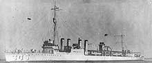 USS Thompson, a 1190-ton Clemson class destroyer, was built at San Francisco, California. She was commissioned in August 1920 and mainly operated in the Pacific throughout her service career, with occasional transits of the Panama canal to take part in fleet exercises in the Caribbean and Atlantic. In early 1921 Thompson steamed south as far as Valparaiso, Chile. She was part of the squadron of destroyers that was involved in the 8 September 1923 Honda Point disaster, but was not herself damaged. In mid-1925, Thompson accompanied the Battle Fleet on its trans-Pacific cruise to Australia and New Zealand.