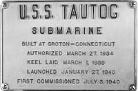 Photo #: 19-N-21887 USS Tautog (SS-199) Ship's Historical Data Plaque, 1940. This photograph was received on 18 July 1940, shortly after Tautog went into commission. Photograph from the Bureau of Ships Collection in the U.S. National Archives. Online Image: 90KB; 740 x 515 pixels Reproductions of this image may also be available through the National Archives photographic reproduction system. |