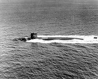USS Thresher, lead ship of a class of 3700-ton nuclear-powered