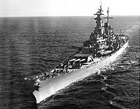 USS Wisconsin was the Navy's last active battleship when she decommissioned in March 1958. She remained in reserve for three decades, but recommissioned in October 1988 in the waning days of the Reagan-era naval expansion. Iraq's invasion of Kuwait in August 1990 brought her to the Persian Gulf area within a few weeks. She was on station there when Operation "Desert Storm" combat operations began in mid-January 1991. During the brief war that followed, Wisconsin fired missiles at targets in Iraq and used her guns to help force the enemy from Kuwait. With the Mid-east war over, and the end of the Cold War producing major cuts in defense expenditures, USS Wisconsin was decommissioned for a third time in September 1991.