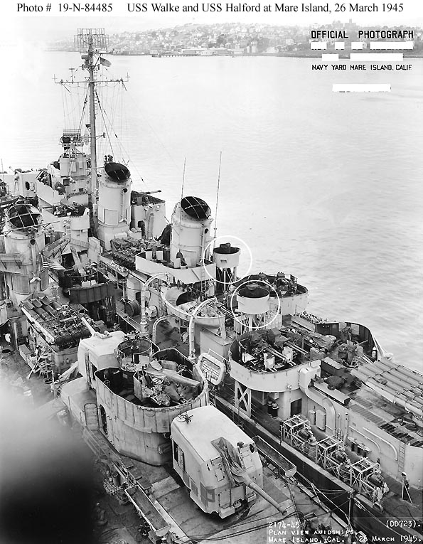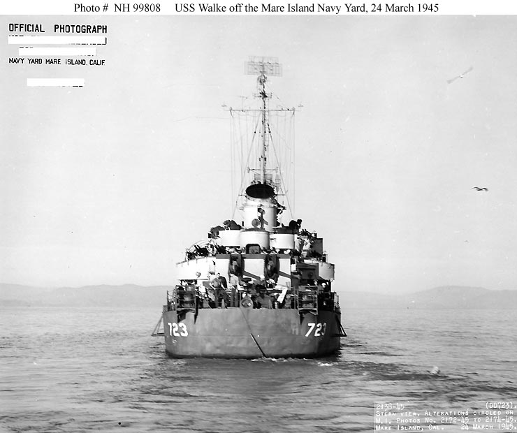 Photo #: NH 99807 USS Walke (DD-723) Off the Mare Island Navy Yard, 24 March 1945. Official U.S. Navy Photograph, from the collections of the Naval Historical Center. Online Image: 72KB; 740 x 625 pixels |