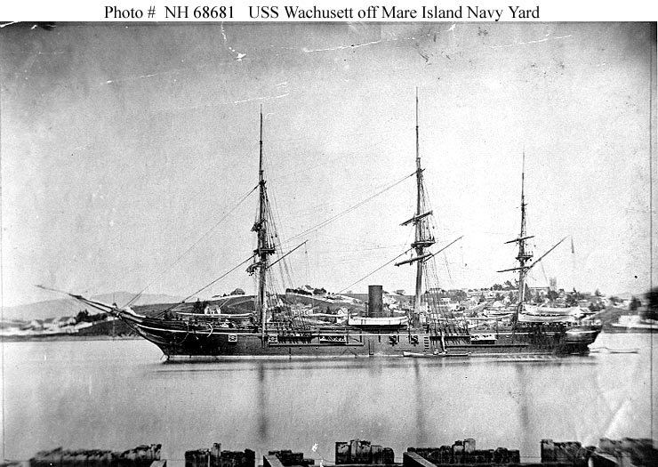 USS Wachusett, a 1032-ton Iroquois class screw sloop of war, was built at the Boston Navy Yard, Massachusetts. Commissioned in March 1862, she saw her first service in the Hampton Roads and James River area of Virginia, where she participated in an attack on the Drewry's Bluff fortifications on 15 May. From September 1862 into 1863, Wachusett was flagship of a special "Flying Squadron" sent to search for Confederate Navy raiders in the Caribbean. Following six months of repairs, she went to the South Atlantic on a similar mission. On 7 October 1864, her commanding officer, Napoleon Collins, took Wachusett into the neutral port of Bahia, Brazil, where she captured the Southern cruiser Florida.