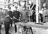 The month's other subjects include one relatively modern (at least from the perspective of the Online Library's compiler) ship: the veteran (active service 1949 to 1977) destroyer Basilone (DDE-824, later DD-824) and the U.S. Marine Corps hero for whom she was named, Gunnery Sergeant John Basilone. Three other ships, all auxiliaries, round out our offerings for the World War II and later eras: The cargo ship Pegasus (AK-48, later IX-222), and the radar picket ships Protector (YAGR-11, later AGR-11) and Vigil (YAGR-12, later AGR-12).